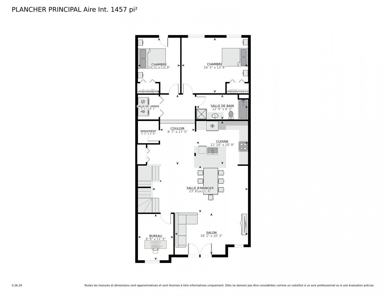 | Salle à manger | 23.8 x 11.8 P | 3ième étage | Bois |