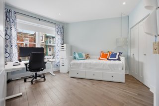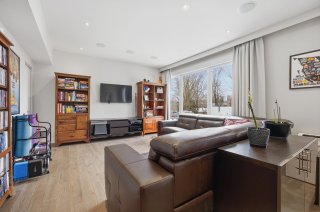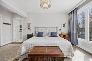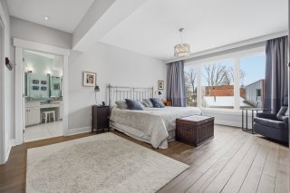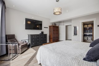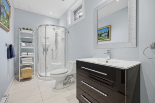 À l'étage, la suite principale propose un walk-in sur mesure avec compartiments spécialisés ainsi qu'une salle de bains raffinée avec planchers chauffants et chauffe-serviettes. Une salle familiale avec système de son intégré peut facilement être convertie en chambre additionnelle, offrant une flexibilité appréciable. Une salle de lavage indépendante complète cet étage avec praticité.