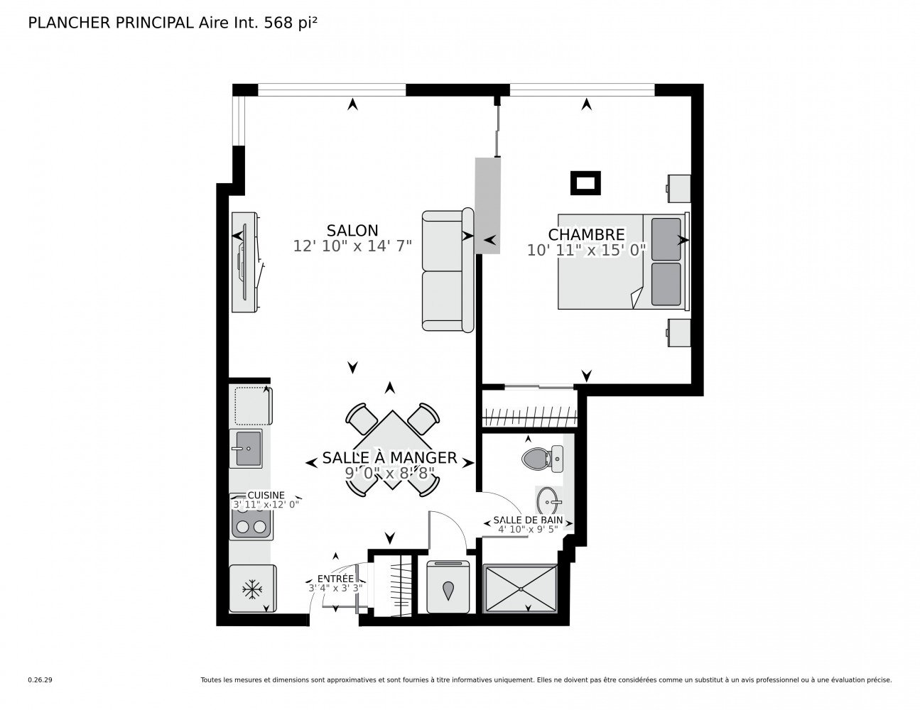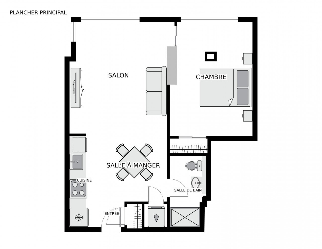 Exclus : Congélateur, porte accordéon séparant la chambre du salon, la bibliothèque, tous les effets personnels du vendeur.