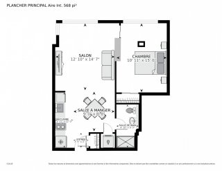 | Salon | 12.10 x 14.7 P | 2ième étage | Bois |