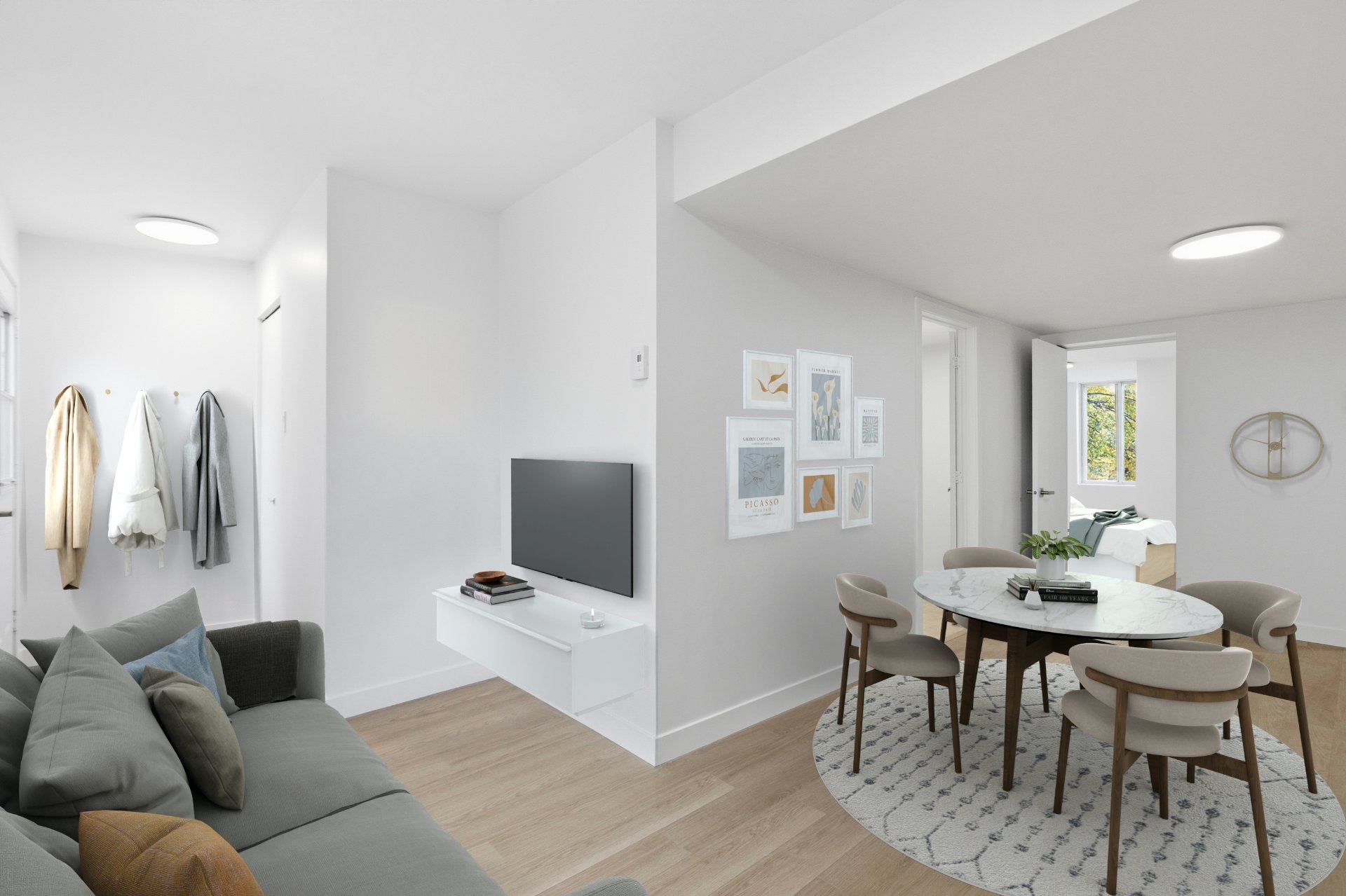 - Salon, salle à manger et cuisine à aire ouverte.