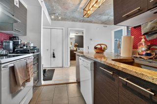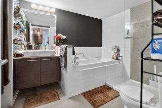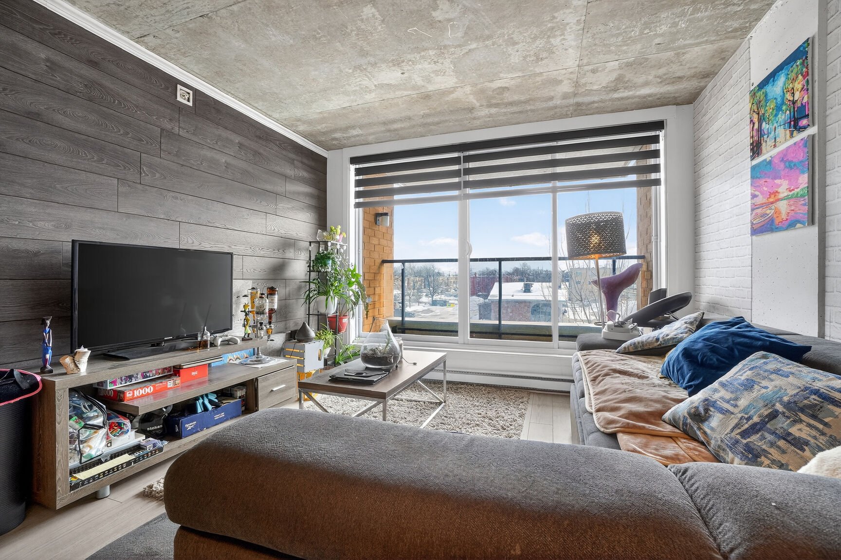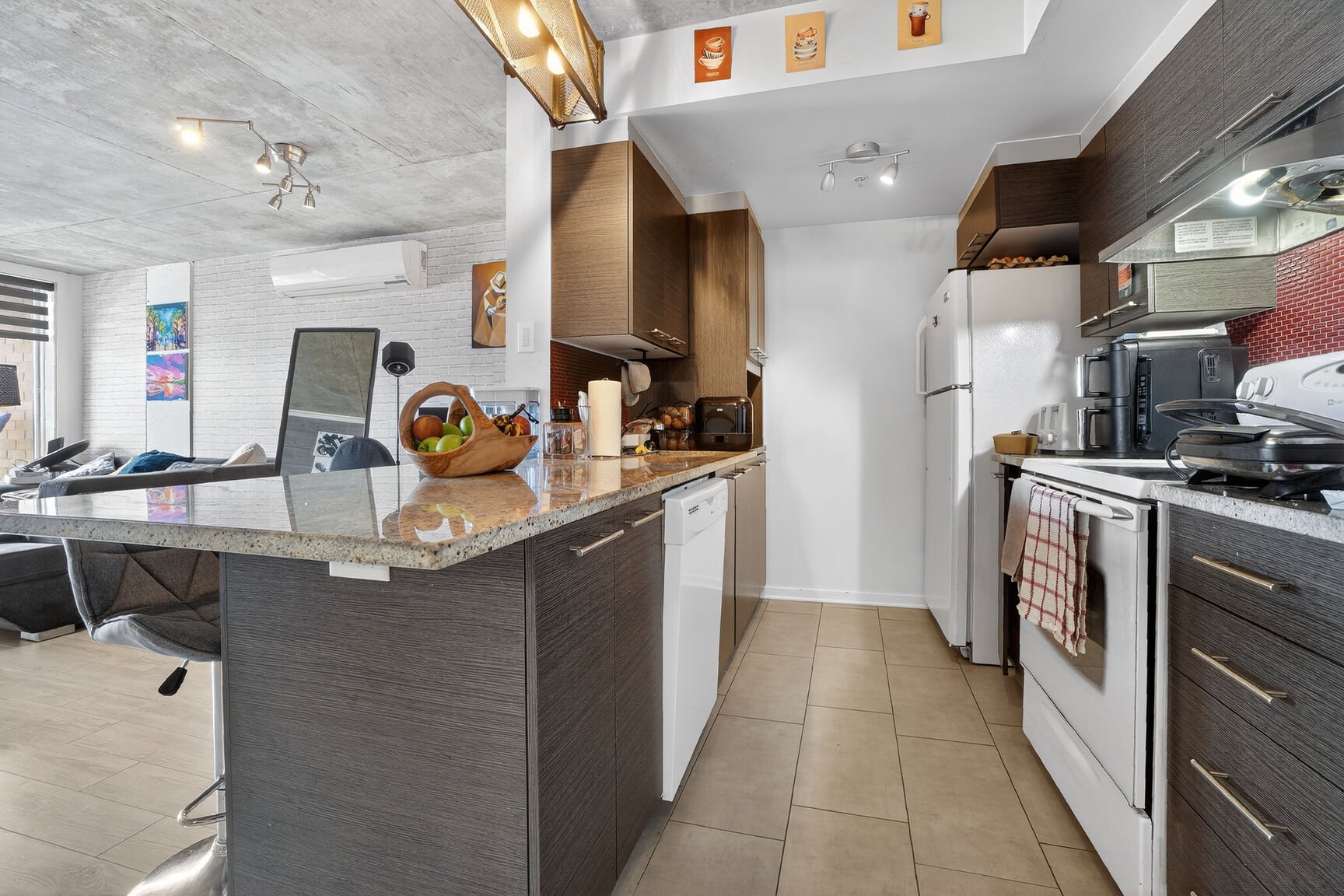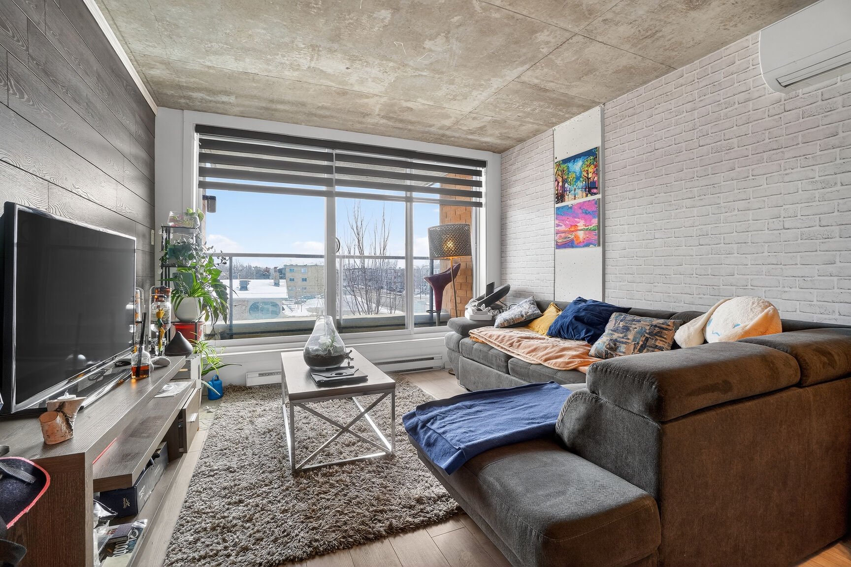 Unité moderne et insonorisée dans un immeuble avec ascenseur, offrant un style contemporain supérieur. Aire de vie ouverte baignée de lumière grâce aux grandes fenêtres, plafond en béton apparent et cuisine avec îlot en granit. Chambre spacieuse avec garde-robe double et salle de bain avec douche vitrée indépendante. Balcon privé. Climatisation murale, échangeur d'air, abondant rangement, stationnement intérieur et rangement de style casier. Chute à déchets à l'étage et frais de condo abordables incluant l'eau chaude. Immeuble certifié Novoclimat, sécuritaire et bien géré, près des services, écoles, transports et des Galeries d'Anjou.